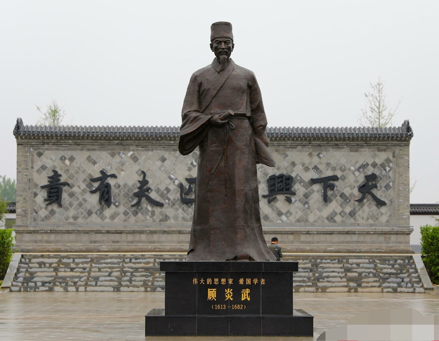 顧園是為了紀(jì)念明末清初的著名思想家顧炎武先生而建造的。園內(nèi)建筑全部為仿明清式古建,具有江南風(fēng)格。為什么我們要在曲沃建造這樣一座園林呢,接下來(lái)就給大家講講顧炎武先生與我們曲沃的不解之緣。讓我們沿著歷史的軌跡,追溯到三百多年前,揭開(kāi)這一謎底。顧炎武,本名絳,字忠清,因慕文天祥學(xué)生王炎午,而改名為炎武。是著名思想家、史學(xué)家、語(yǔ)言學(xué)家,與黃宗羲、王夫之并稱為明末清初三大儒。梁?jiǎn)⒊u(yù)其為清學(xué)開(kāi)山之祖。