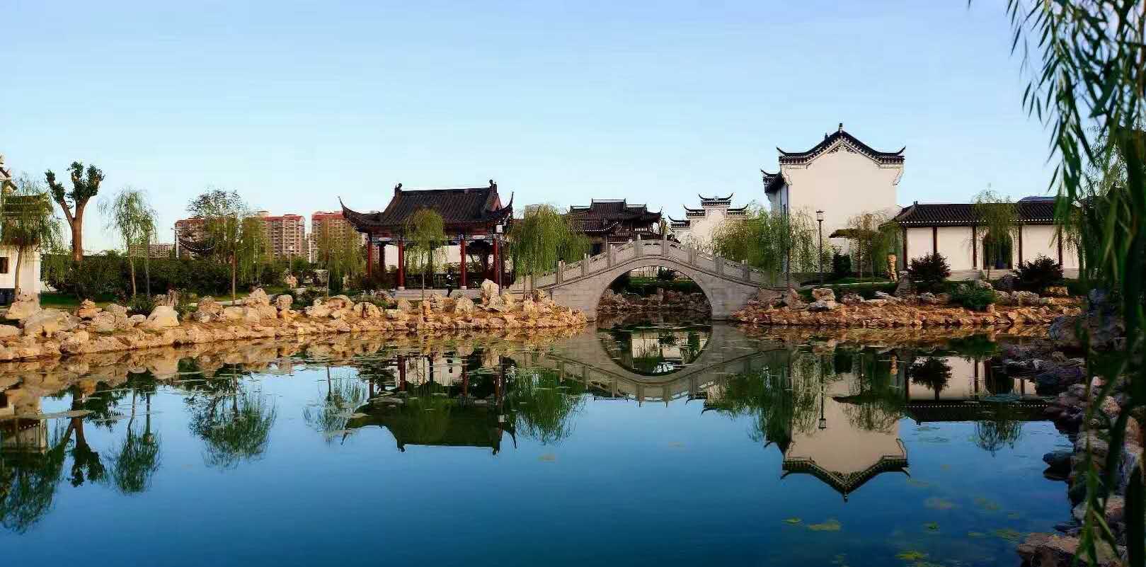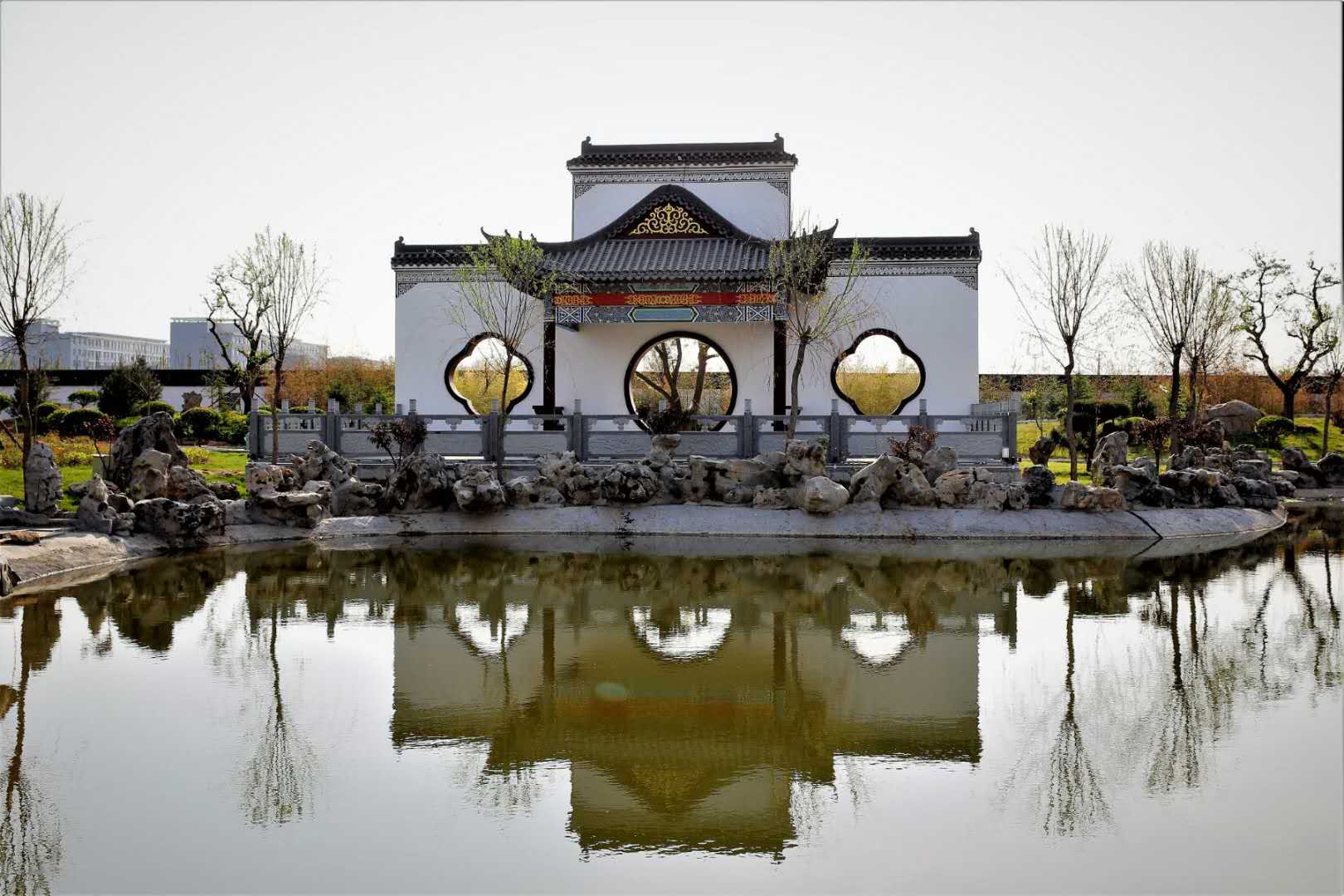 顧園位于城東新區(qū)中心地帶,西為吉祥南路,北為貢院東街,東西長(zhǎng)150米,南北長(zhǎng)180米,占地約40畝,設(shè)計(jì)為南北走向。方案采用橢圓形島式的規(guī)劃設(shè)計(jì),主要以曲徑通幽、小橋流水的江南風(fēng)格為主,南北特色兼顧的明清式仿古建筑為載體,分東、西和主題景觀區(qū)三個(gè)單元。東景觀區(qū)由桃園、李園和翠竹園組成,寓意顧炎武先生桃李滿天下的成就和堅(jiān)韌不屈的氣節(jié);西景觀區(qū)由杏樹(shù)林、柿子樹(shù)以及銀杏、紅楓等灌木組成;主題景觀區(qū)由一湖一山(搖籃湖、白石山)、一軒一榭(光明軒、四方榭)、一臺(tái)一橋(讀書(shū)臺(tái)、石橋)組成,是為弘揚(yáng)和傳承明末清初,寓居曲沃的著名思想家顧炎武“天下興亡、匹夫有責(zé)”這一思想,而規(guī)劃建設(shè)的愛(ài)國(guó)主義主題文化公園。