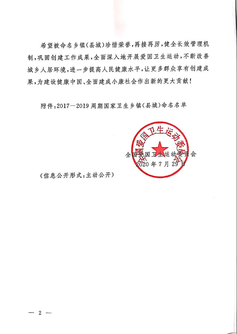 2017-2019 周期國家衛(wèi)生鄉(xiāng)鎮(zhèn)(縣城)