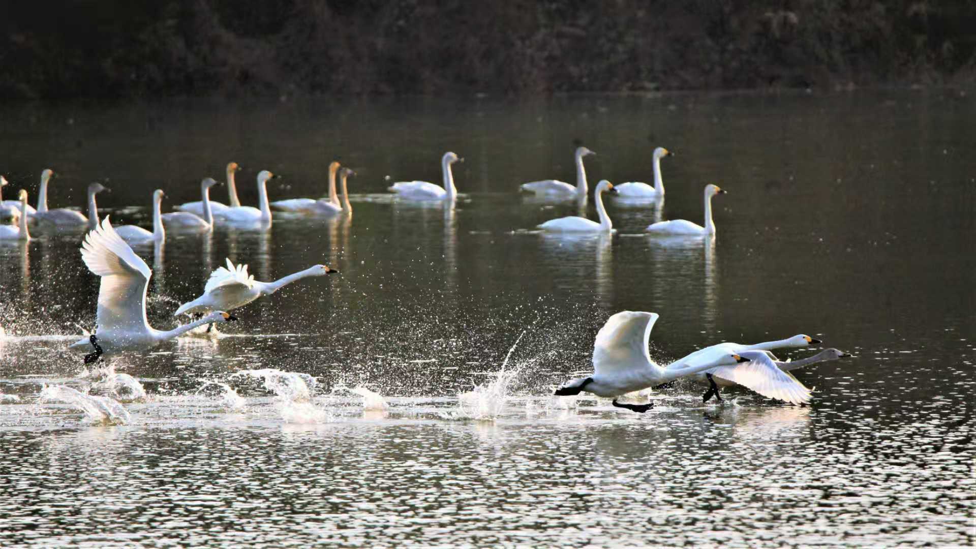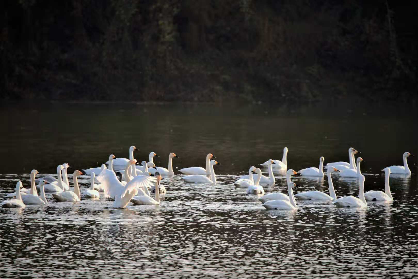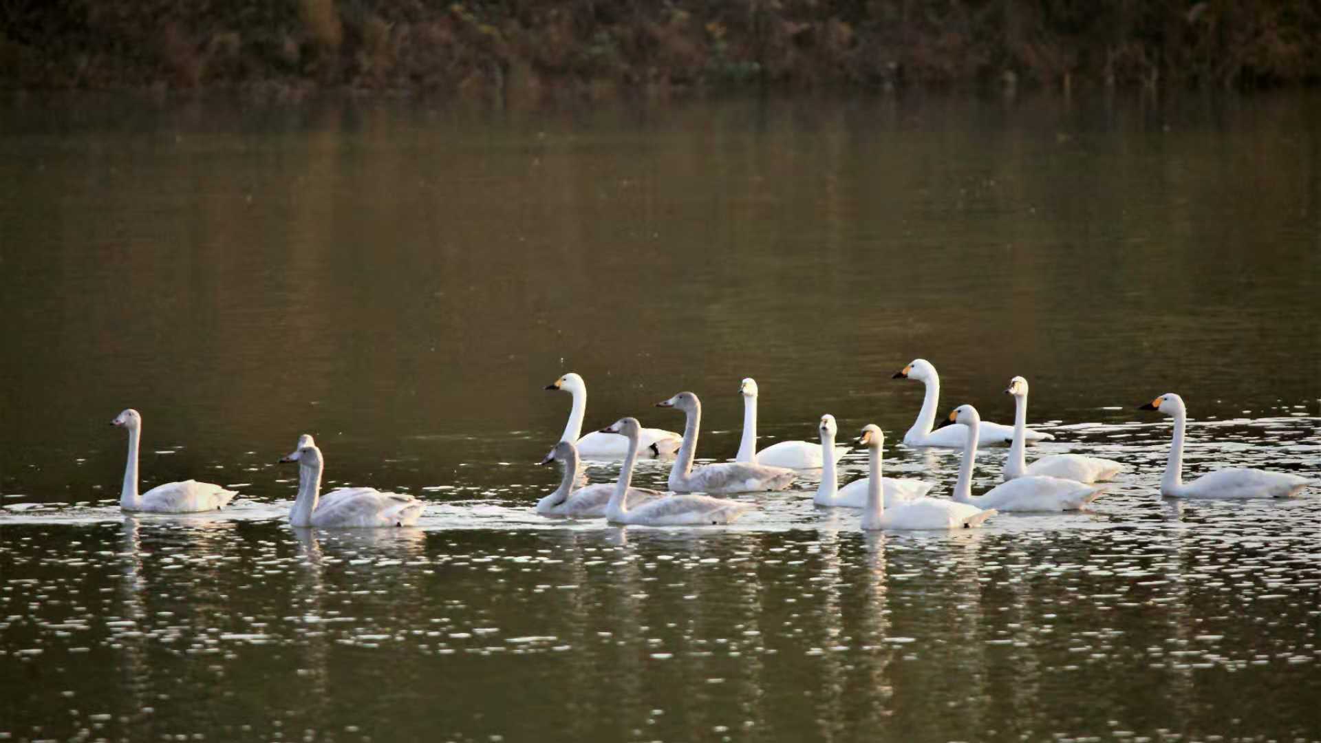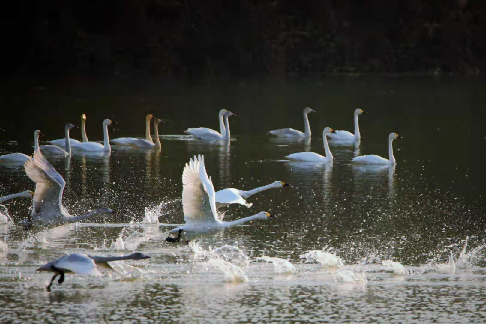 天河水庫來了白天鵝(圖片)