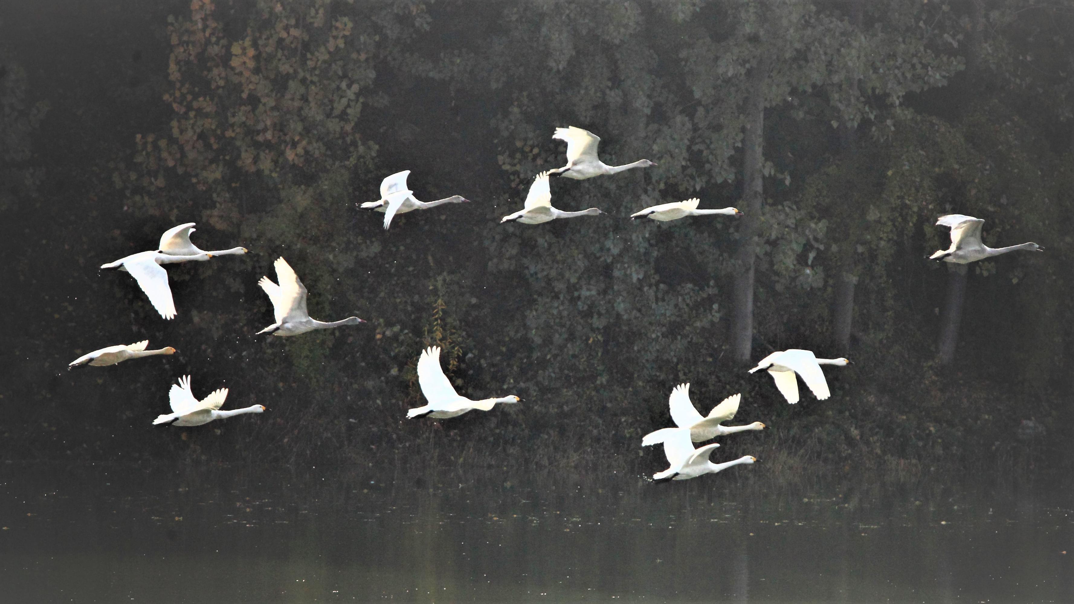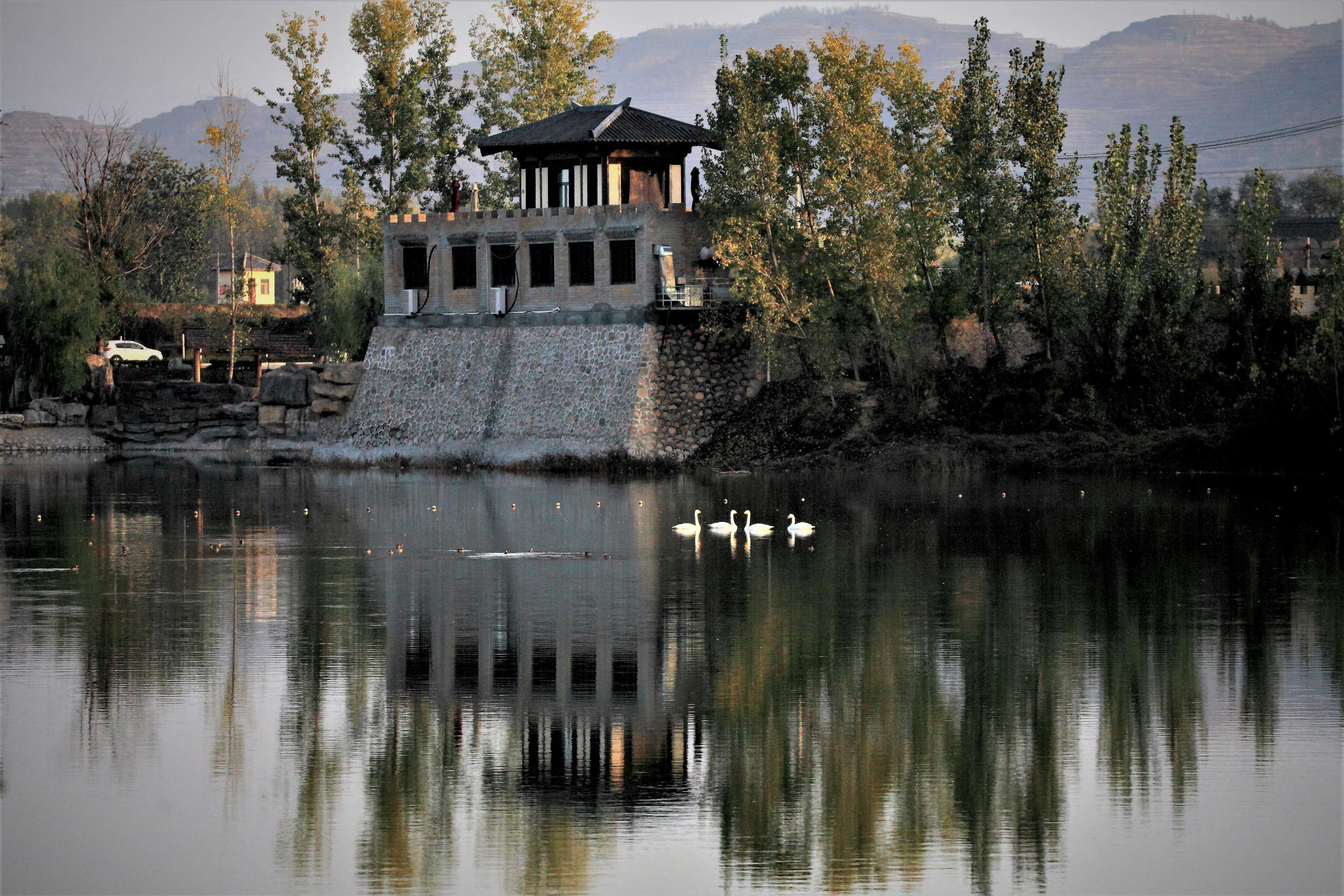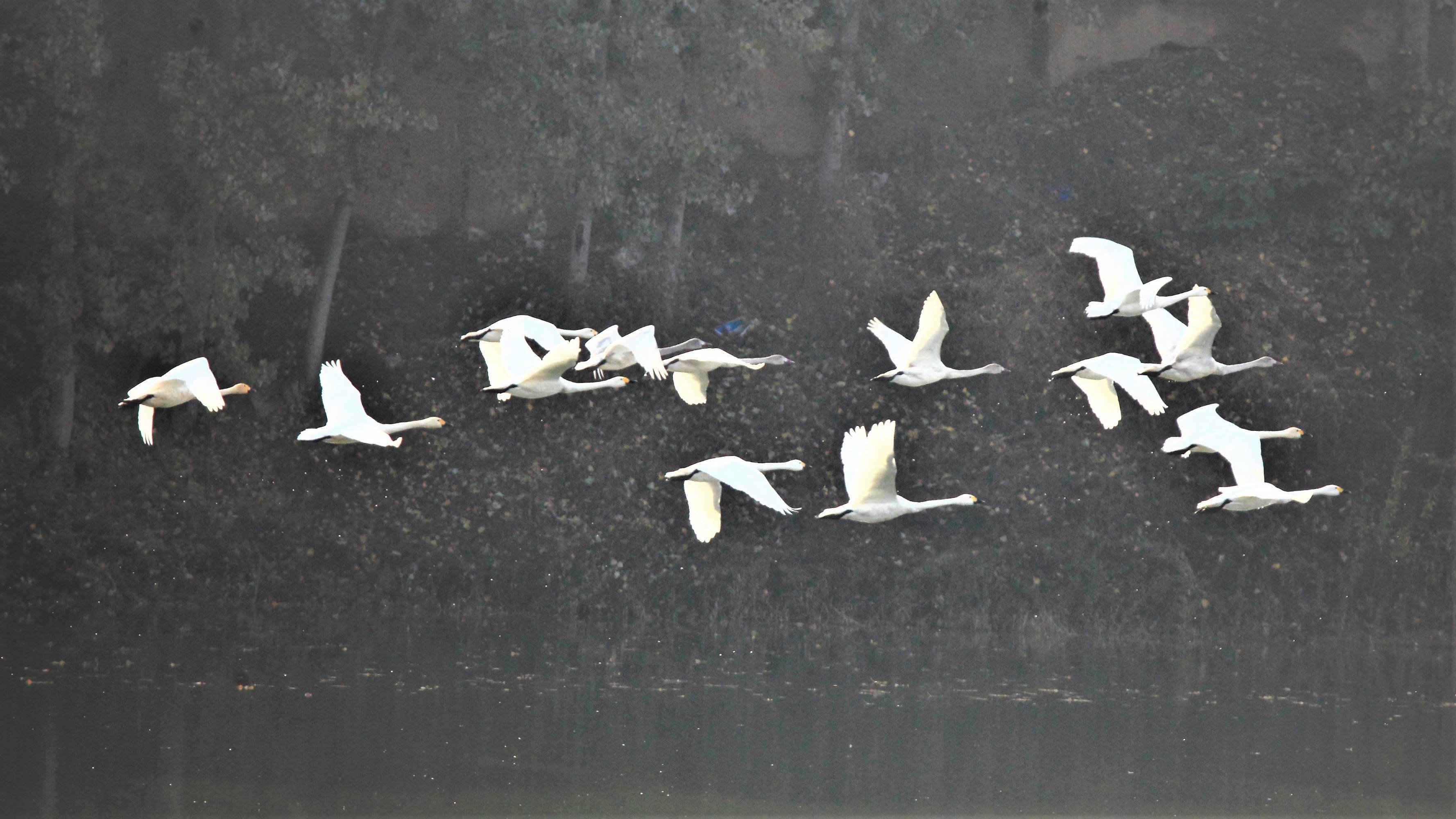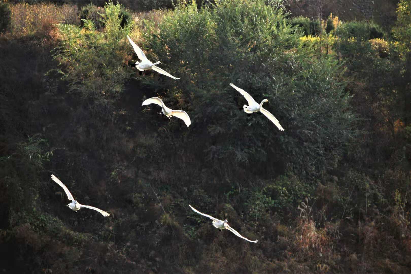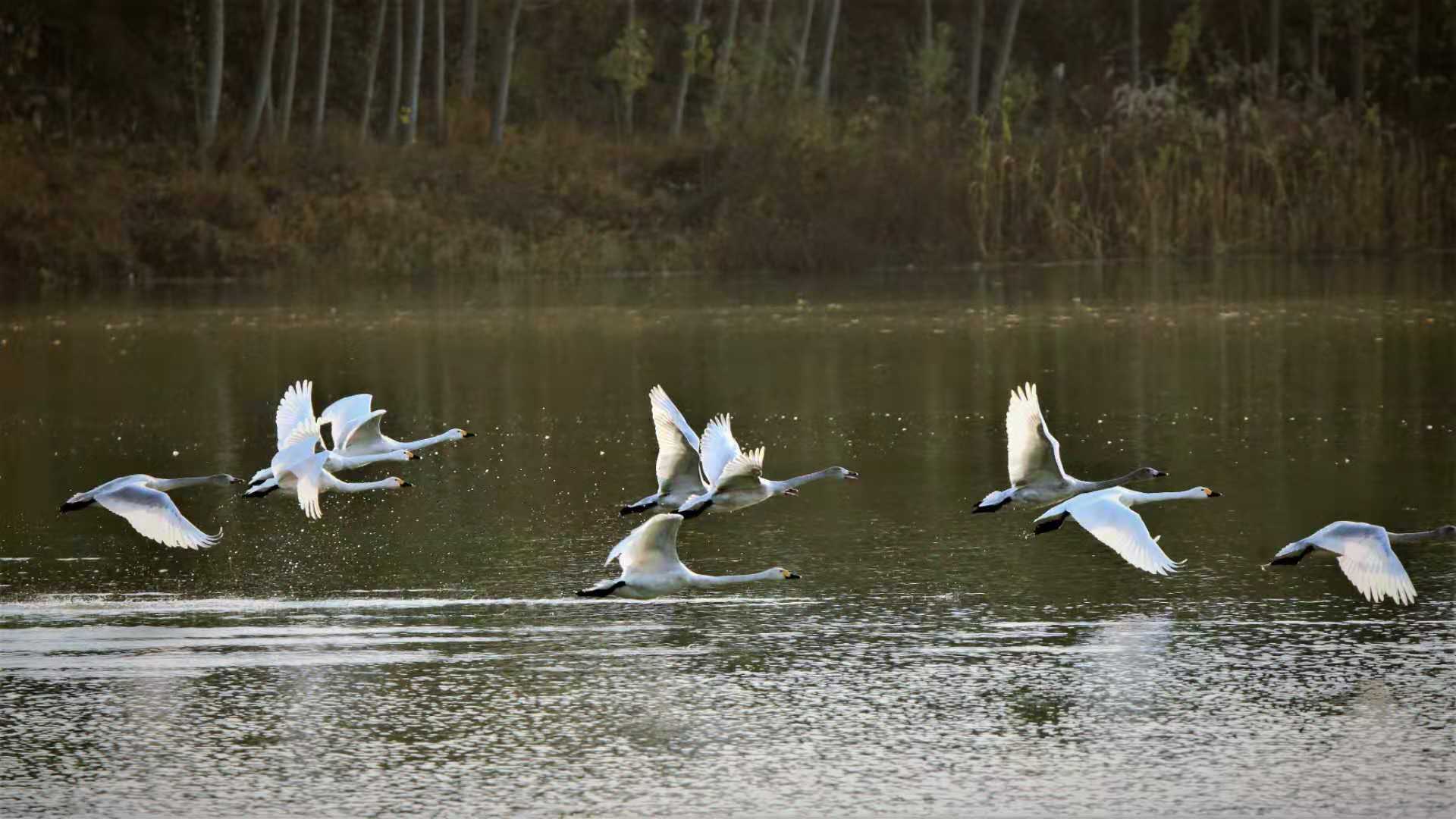 天河水庫來了白天鵝(圖片)
