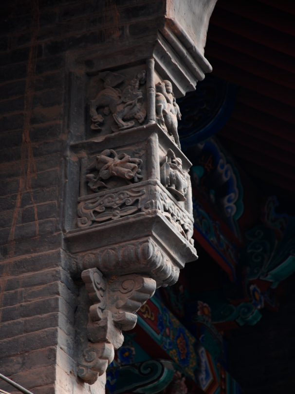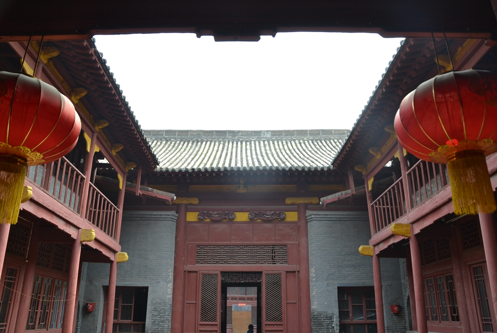 薛家大院,呈南北中軸線布局,從南向北有前院、中院、北院,山門(mén)位于前院東南角,現(xiàn)存建筑沿中軸線依次有:南房、過(guò)廳、過(guò)廳樓、北樓。前院均為平房,由山門(mén)、東西廂房、南房、過(guò)廳組成;中院經(jīng)過(guò)廳樓與后院相連,由東西樓、北樓組成。東西樓形制相同,面闊三間,建筑面積為91.8平方米。北樓為明三暗五的建筑格局。北、中院系兩層閣樓式磚木結(jié)構(gòu),南院為一層磚木結(jié)構(gòu),整個(gè)大院錯(cuò)落有致、古樸典雅,具有晉文化風(fēng)格。大院建筑中保存有精美的石雕、木雕及彩繪,北樓下欄額木雕技藝精湛,樓內(nèi)雕梁畫(huà)棟裝飾華麗,前檐柱下柱礎(chǔ)石雕刻精美,具有典型的清代地方建筑風(fēng)格。