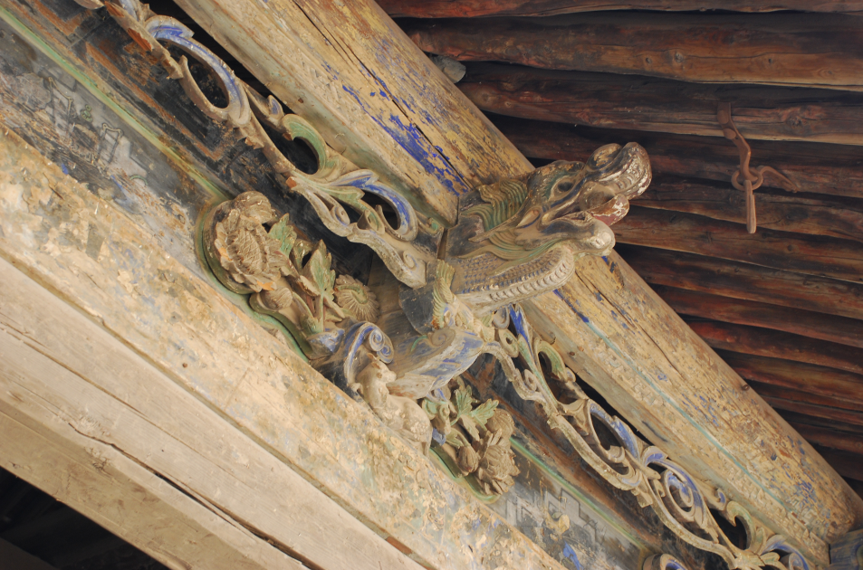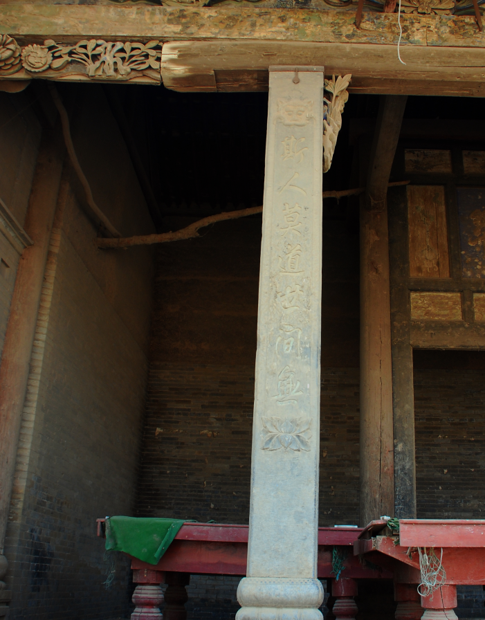 楊莊戲臺,位于曲村鎮(zhèn)楊莊村中??h級文物保護單位。據(jù)戲臺樑脊板記載:始建于清代,道光七年(1827)維修。戲臺座北向南,面闊三間,進深兩間,兩側(cè)有化裝樓閣三間,占地面積145平方米。附屬文物有碣18塊。楊莊戲臺單檐硬山頂,有石柱四根,石柱上有對聯(lián)一幅“此曲祗直天上有,斯人莫道世上無”,橫書“穆愉飛翠”。保存完整。